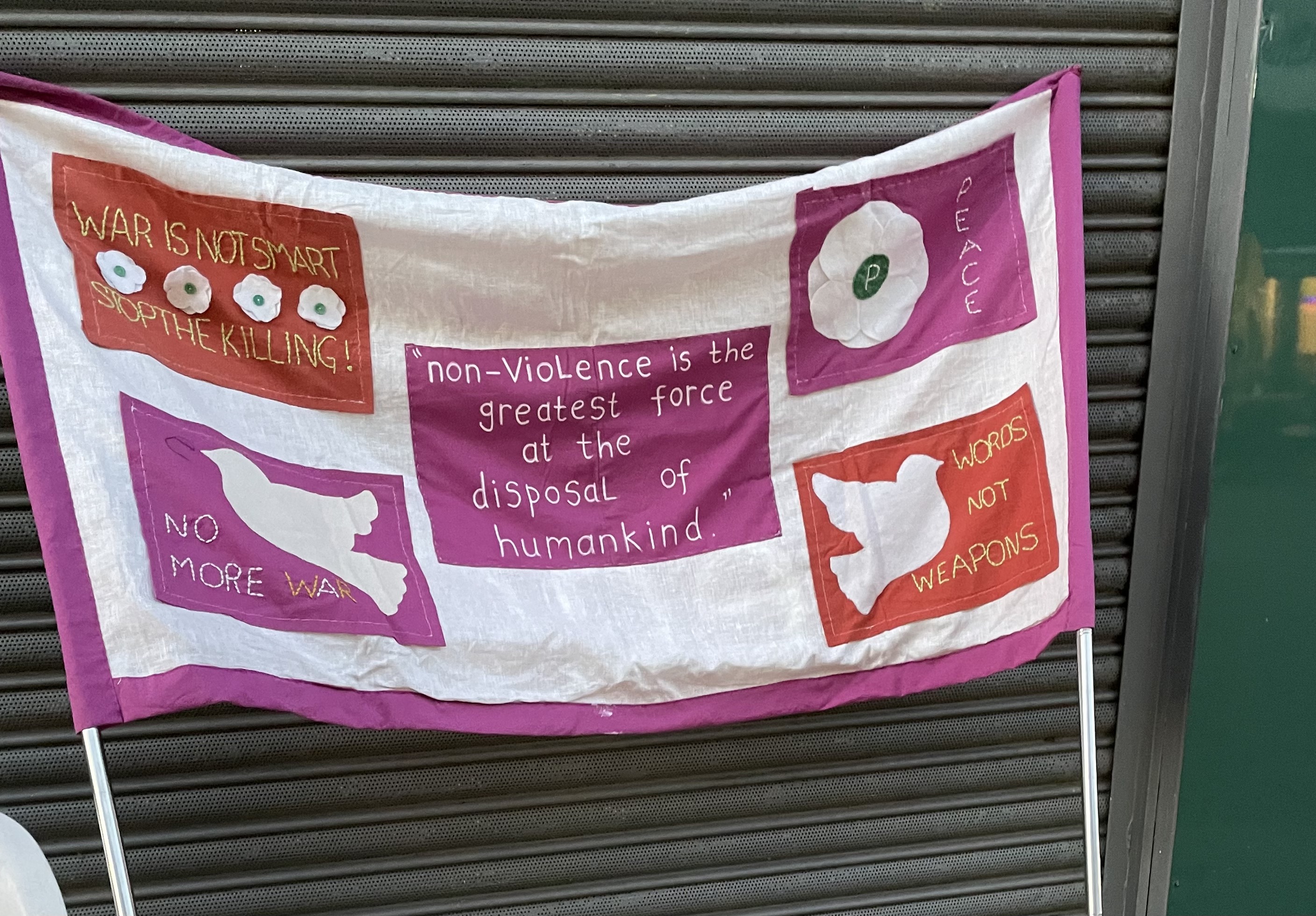 The pictures above are of local Quakers in the community over the last couple of years: vigil for Gaza, making and presenting peace Remembrance wreaths and a vigil commemorating the loss of life amongst those demonstrating against the suppression of women in Iran.
